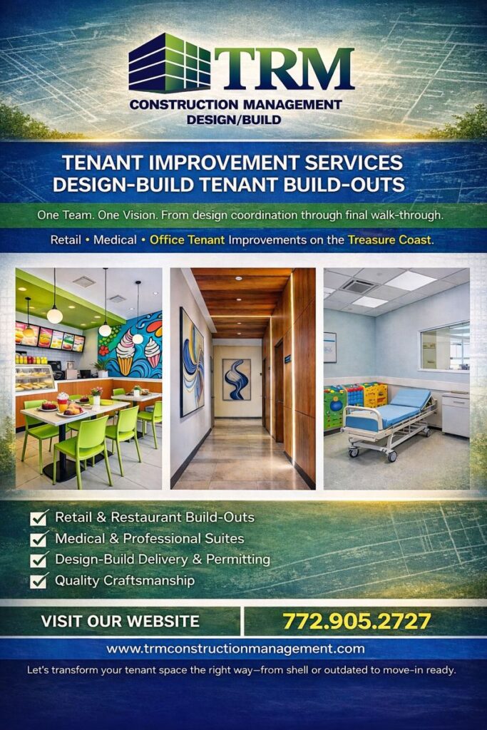 Transforming tenant spaces is what TRM Construction Management does best. From shell condition to move‑in ready, our team delivers design‑build tenant improvement services for retail, medical, and professional office clients along the Treasure Coast.Whether it’s a vibrant restaurant, a modern medical suite, or a professional office, we manage every step—from design coordination and permitting through […]